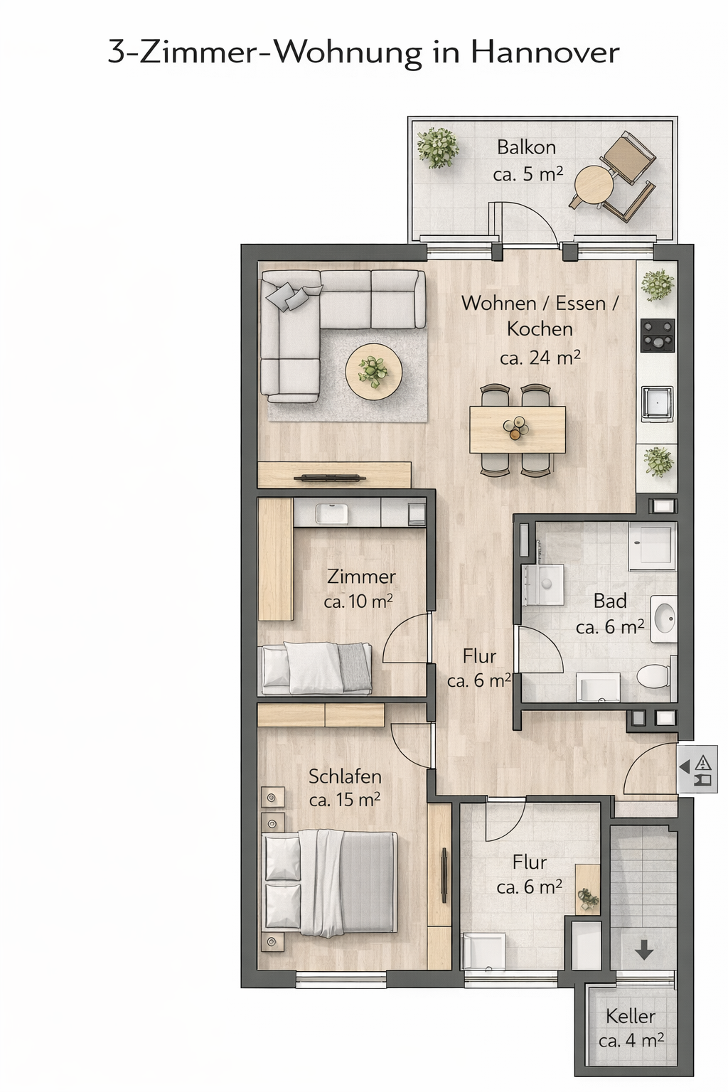 30169 Hannover – 3-Zimmer-Wohnung Zentral